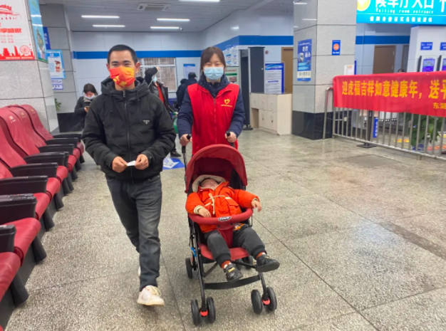 2月17日下午,青山客运分公司副经理熊悦在售票大厅巡岗时,发现一名旅客带着一名熟睡的宝宝进站购票。见旅客抱