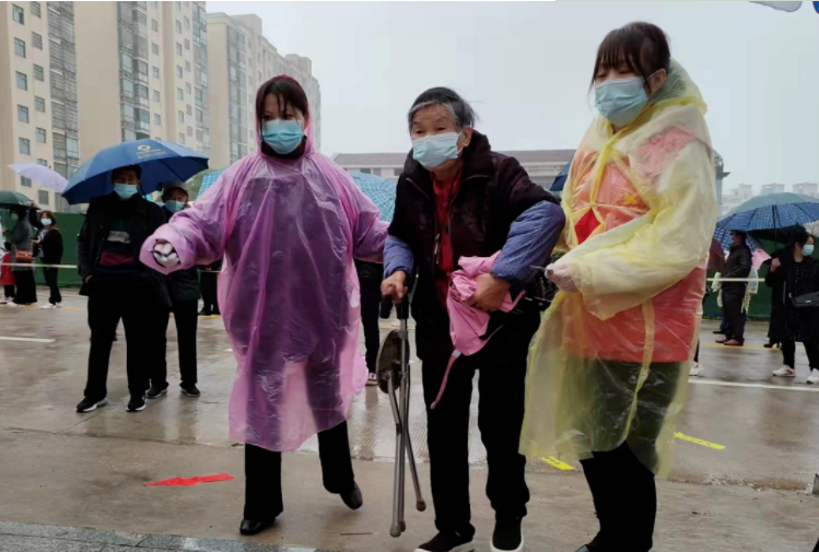 “大哥您好,请问您是过来做核酸检测的吗?”“大爷您好,做核酸检测,您预约了吗?”寒雨中的为民服务大厅广场上