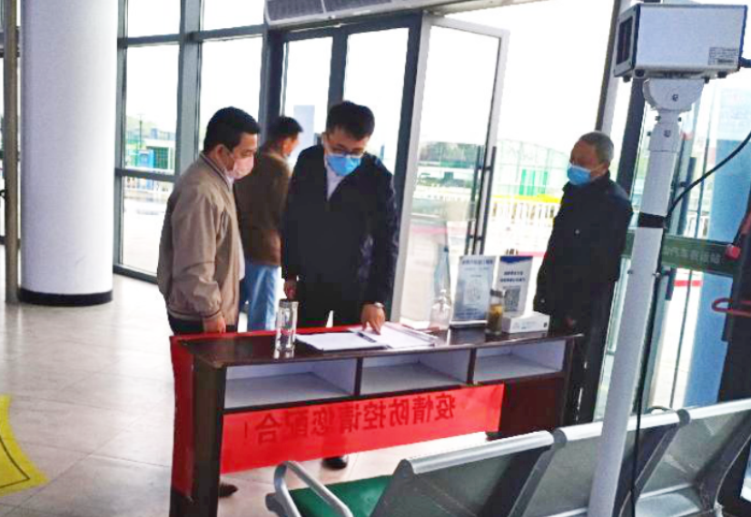 4月12日下午,股份公司副总经理占梁一行前往南昌长途汽车站督导疫情防控工作。占梁一行在进站大厅仔细查看车
