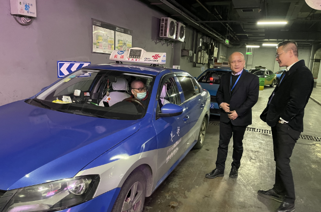 3月28日,长运出租总经理杨小龙带队前往火车站西广场开展文明创建督导工作。在督导现场,杨小龙向出租车驾驶员