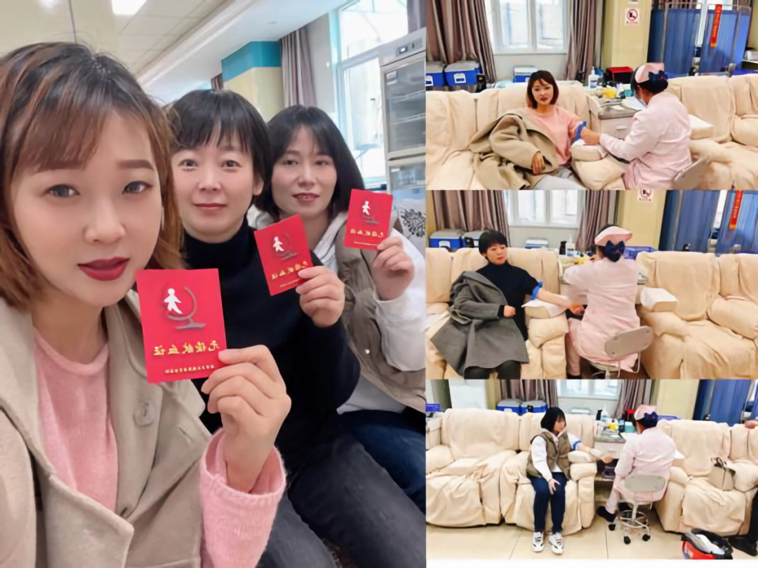 4月4日,马鞍山市卫生大厦献血办公室站内,迎来了当涂长客公司的“三朵金花”,她们积极响应公司无偿献血号召,