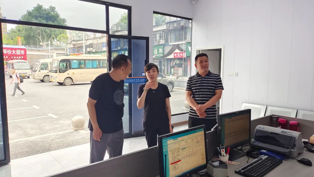 6月16日,九江长运董事长徐秋霞一行来到试运行的九江长途汽车站长虹驿站进行调研。在长虹驿站,相关负责人汇报