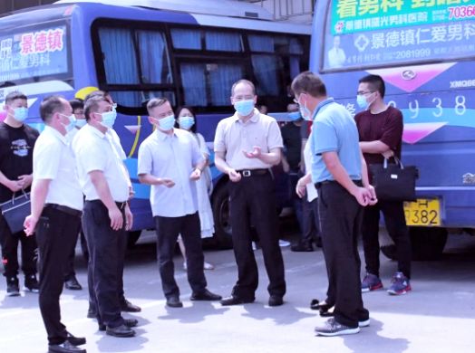 6月22日上午,抚州市疫情防控驻点指导组偕同崇仁县交通局局长熊兴华一行莅临崇仁客运中心指导疫情防控工作。