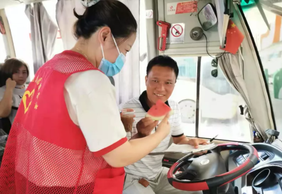 7月11日,为保障职工身体健康,确保安全生产,上饶汽车东站“佳宜”班组成员利用午休时间开展“送清凉、保安全