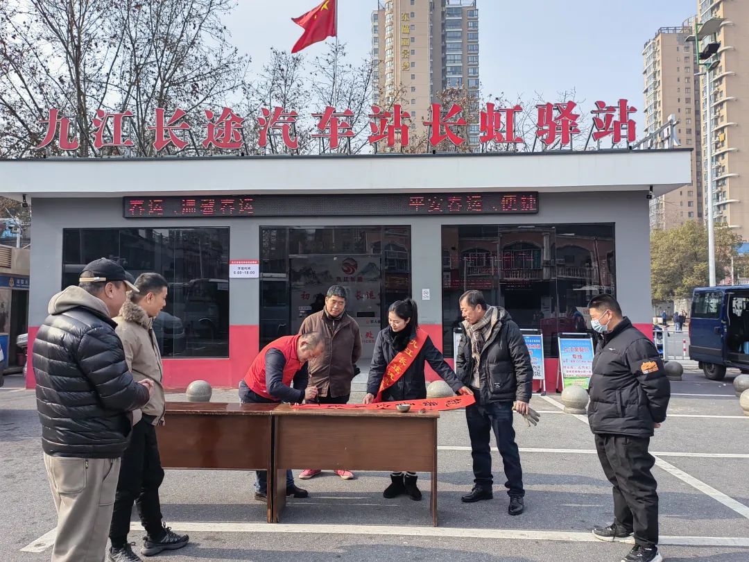 “龙舞长空万象新,春回大地千山秀。”“龙腾虎跃人间景,鸟语花香天地春。”2月8日上午,九江长途汽车站组织书