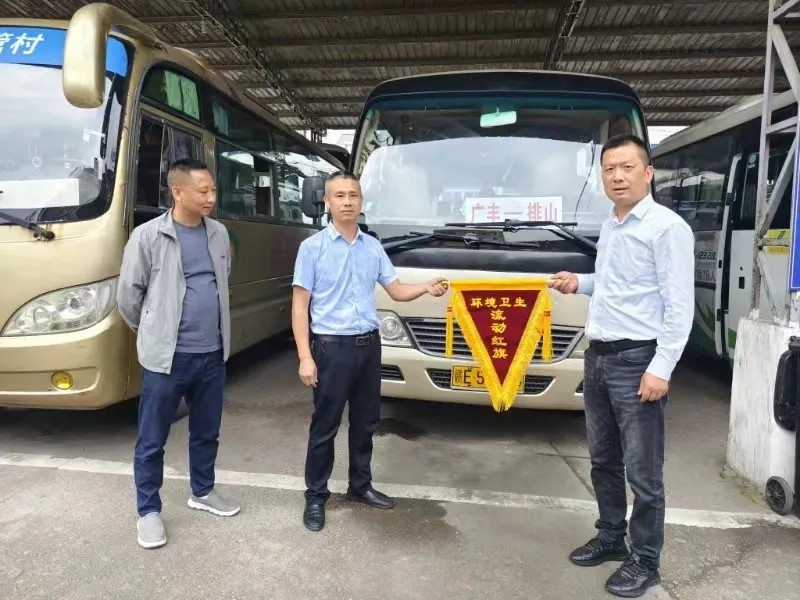 6月4日上午,上饶汽运广丰片区副经理杨长勇把鲜红的文明卫生流动红旗送到了各片区先进车辆驾驶员手中。接过红