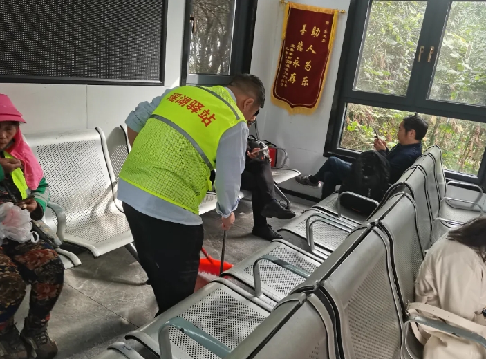 11月11日,站务分公司组织瑶湖客运驿站全体员工,开展每周一次的大卫生清扫活动。工作人员对客运驿站进行了全